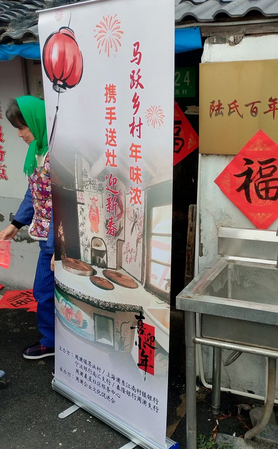 此次送灶行动由周浦镇界浜村、周浦晨星社区做事中心、上海浦东江南村镇银行、宁波银行南汇支行、泰隆银行周浦支行专揽、周浦企业文化促进会经办。